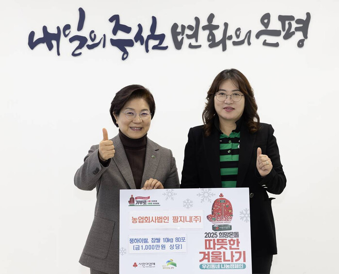 [시민일보 = 이대우 기자] 은평구(구청장 김미경)가 최근 주식회사 농업회사법인 팜지니와 사랑의 쌀 전달식을 가졌다고 밝혔다.
