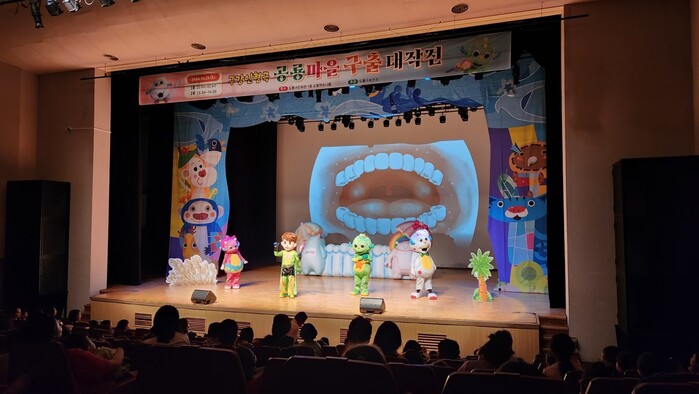 서울 도봉구가 제79회 구강보건의 날을 기념해 최근 도봉구민회관에서 총 2회에 걸쳐 구강 인형극 ‘공룡마을 구출 대작전’을 선보여 구강건강 지식 습득 및 실천 동기 부여 등을 알기 쉽게 전달했다. 사진은 이날 공연 모습. (사진=도봉구청 제공)