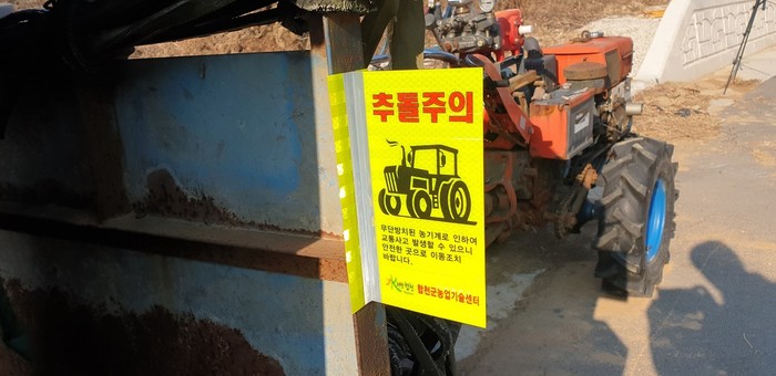 농사에 사용하던 값비싼 농기계가 도로변에 무단 방치되고 있어 사고의 위험과 함께 통행에도 큰 불편을 초래하고 있어 포인트 존 반사 스티커를 제작하여 농기계 순회안전교육 시 도로변에 방치된 경운기, 트랙터, 이앙기 등을 대상으로 무상으로 부착할 계획이다.