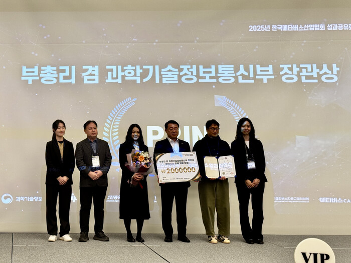 | ▲ (재)시흥산업진흥원은 지난 12월 2일 서울 나인트리 프리미어 로카우스 호텔에서 열린 ⌜2025 메타버스 얼라이언스 성과공유회⌟에서, 진흥원이 참여한 프로젝트가‘2025 메타버스 얼라이언스 프로젝트 그룹’부문에서 과학기술정보통신부 장관상을 수상했다 /사진제공=시흥산업진흥원 |