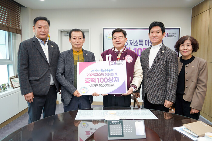 [시민일보 = 이대우 기자] 동대문구(구청장 이필형)가 최근 작은사랑나눔운동본부(대표 이남숙)으로부터 저소득층 가정을 위한 호떡 100상자(환가액 1000만원 상당)를 기탁 받았다.