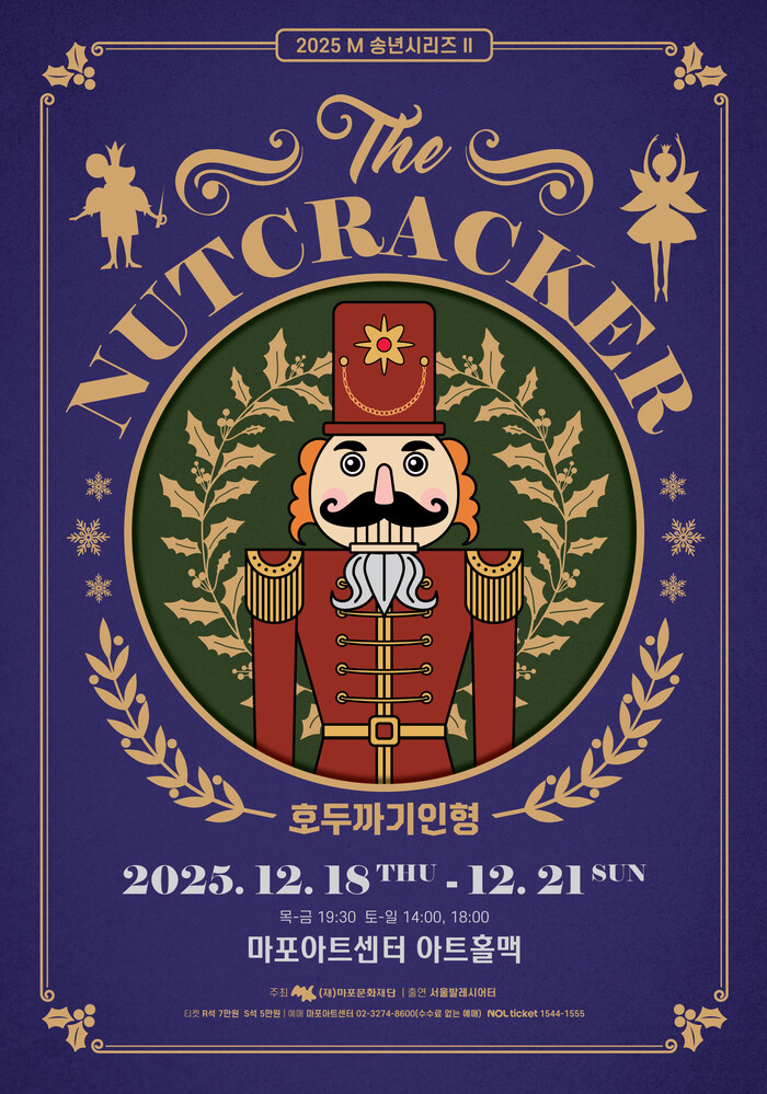 [시민일보 = 문민호 기자] 마포문화재단(대표이사 고영근)은 오는 12월 18일부터 21일까지, 마포아트센터 아트홀맥에서 2025 M 송년시리즈Ⅱ - 발레 <호두까기인형>을 선보인다. 이번 공연은 마포문화재단의 상주단체인 서울발레시어터의 재해석을 통해 가족 모두가 색다르게 즐길 수 있는 발레 공연으로 연말을 장식한다.