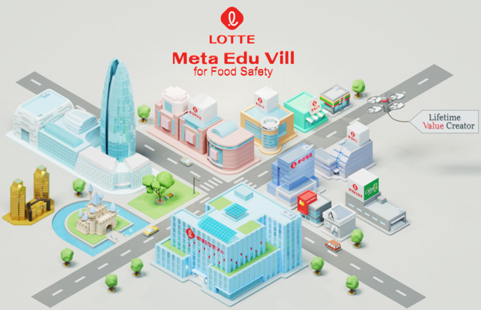 ‘롯데메타에듀빌’은 롯데중앙연구소 안전센터(이하 롯데안전센터)의 ‘롯데식품안전아카데미 교육장’을 메타버스로 구현한 공간이다.