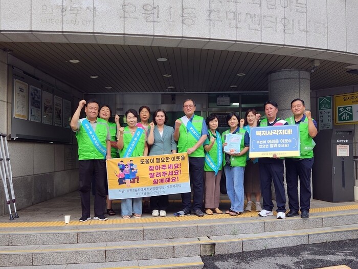 경기 의정부시 호원1동 주민센터는 최근 ‘찾아주세요! 알려주세요! 함께해요!’라는 주제로 복지사각지대 발굴 홍보 운동을 실시했다. 사진은 이날 캠페인 참가자들이 기념촬영을 하고 있는 모습. (사진=의정부시청 제공)