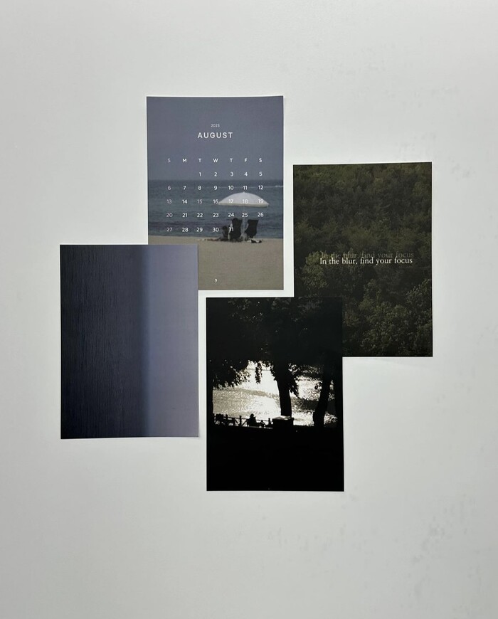 모든 컷이 다 아름답지만 특히 푸른 바다에 흰 파라솔을 펼쳐 놓은 캘린더 포스터의 경우, 자체 촬영한 컷을 활용한데다 노이즈 효과로 빈티지한 무드를 살려 블러리만의 감성이 고스란히 느껴진다.