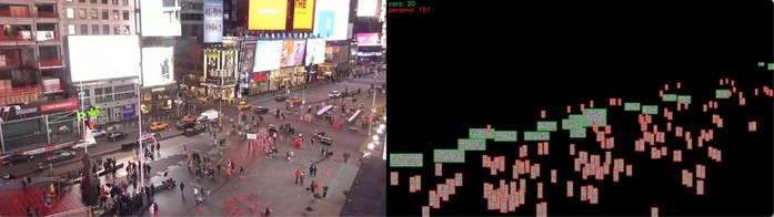 | ▲ 강남구 소재 스타트업 딥핑소스가 미 광고업체과 협업해 타임스퀘어 광고판 주변 폐쇄회로(CC)TV 접속 후 익명화 및 유동인구 트래킹 분석을 진행하고 있는 모습. (사진제공=강남구청) |