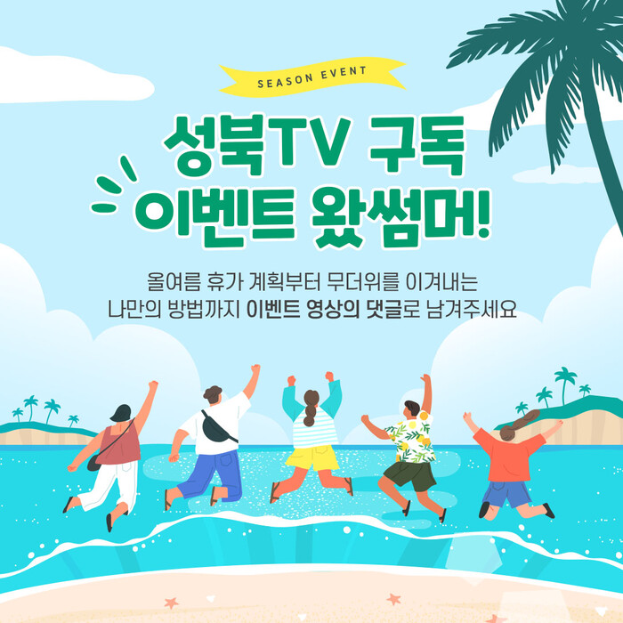 구는 이달 3일부터 20일까지 유튜브 성북TV 구독 이벤트 '왔썸머!'를 진행하고 있다고 밝혔다.