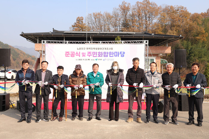 [산청=이영수 기자] 경남 산청군은 생초면 노은지구 농어촌 취약지역 생활여건 개조사업(새뜰마을사업)을 마무리하고 23일 준공식을 가졌다고 밝혔다.