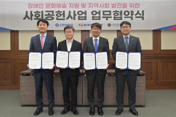 [시민일보 = 여영준 기자] 서울 중구(구청장 김길성)가 최근 구청에서 신한라이프, 한국전력공사, 서울중구장애인복지관과 ‘장애인 문화예술 지원 및 지역사회 발전을 위한 사회공헌사업’ 업무협약식을 개최했다.