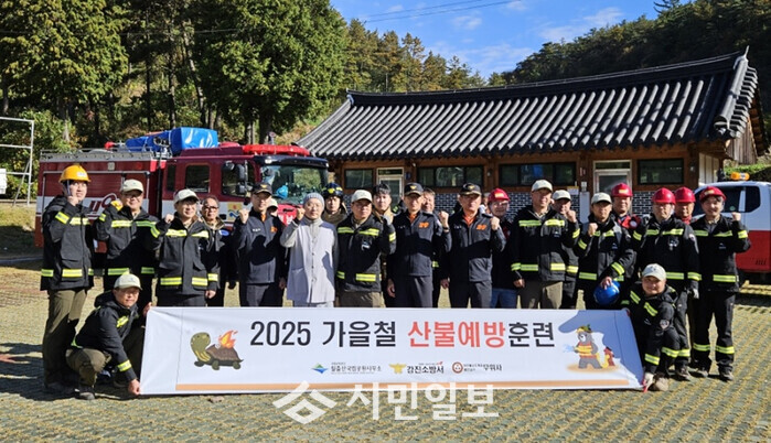 훈련은 무위사 인근에서 산불이 발생한 상황을 가정해 진행됐으며, ‘초기 대응 및 진화체계 점검’, ‘유관기관 간 임무 분담 및 공조체계 확립’, ‘문화재 보호 중심의 화재 확산 방지’ 등 실질적인 대응훈련에 중점을 뒀다.