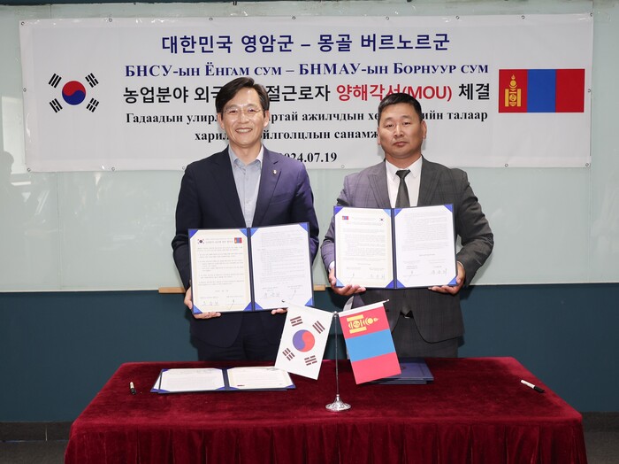 이틀 뒤인 19일에는 우승희 영암군수와 정운갑 영암군의회 부의장, 강찬원 경제건설 위원장이, 몽골 버르노르군에서는 운드라빌렉 버르노르군수와 칭기스 부군수, 신바야르 의원이 참석한 가운데 군의 농촌 일손 부족 해결을 위해 ‘외국인 계절근로자 MOU’도 체결했다.