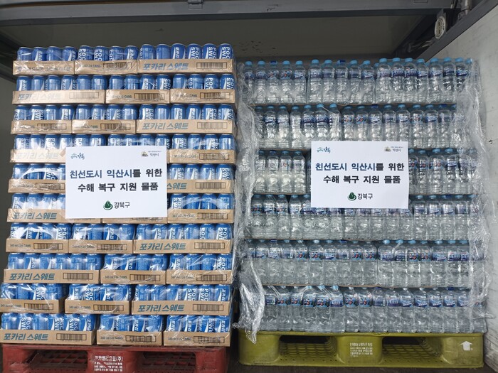 [시민일보 = 홍덕표 기자] 서울 강북구(구청장 이순희)는 집중호우로 수해를 입은 전북 익산시와 충남 부여군에 최근 양일에 걸쳐 수해 구호물품을 전달했다고 26일 밝혔다.
