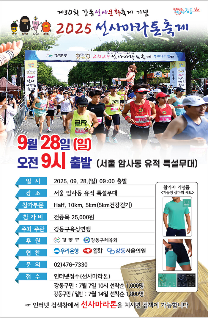 [시민일보 = 이대우 기자] 서울 강동구(구청장 이수희)가 오는 28일, 우리나라 대표적인 선사시대 유적인 서울암사동유적에서 ‘2025 선사마라톤축제’를 개최한다.