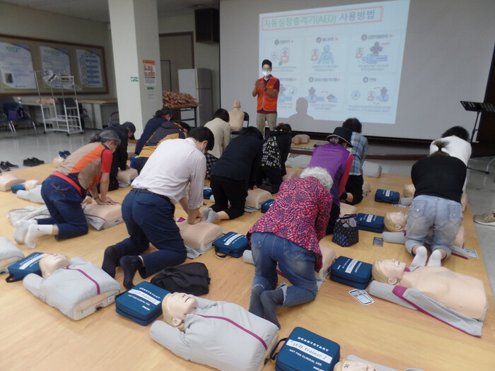 서울 도봉구가 최근 구청 심폐소생술 교육장에서 지역내 심뇌혈관질환자 및 가족을 대상으로 심폐소생술 교육을 실시했다. 사진은 이날 교육 참여자들이 심폐소생술 실습을 하고 있는 모습. (사진=도봉구청 제공)