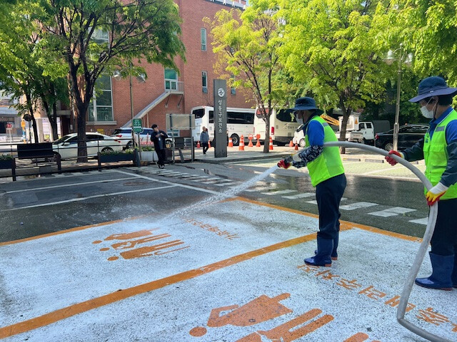 또한 보건소 주차장은 성동구도시관리공단의 업무 협조로 고압 세척기를 이용해 오염물질과 먼지를 제거했다.