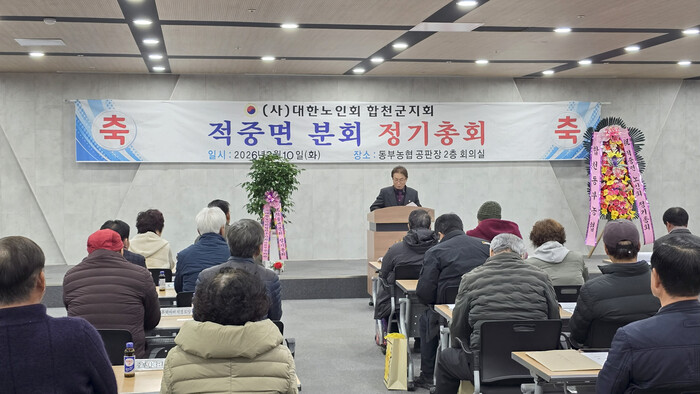 [합천=이영수 기자] 합천군 노인회 적중면 분회(분회장 이정일)는 2월 10일 합천동부농협 농산물산지유통센터 대회의실에서 2026년 정기총회를 개최하였다.