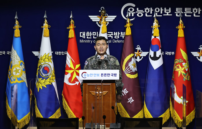 5일 서울 용산구 국방부에서 전동진 합동참모본부 작전본부장이 '철책 월북 사건' 초동 조치 조사결과를 발표하고 있다. (사진제공 = 연합뉴스)