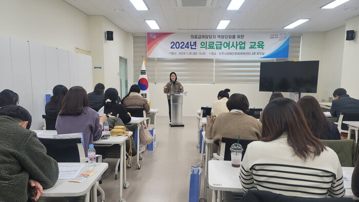 진주시는 30일 진주시 장애인문화체육센터 반다비에서 읍면동 의료급여 담당자 30명을 대상으로‘2024년 읍면동 의료급여담당자 업무역량 강화교육’을 실시했다.