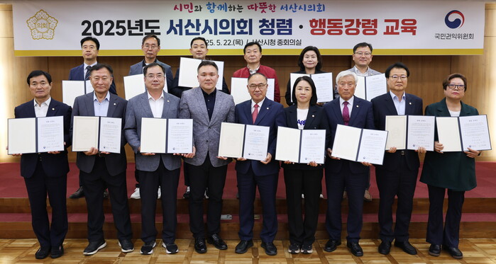 한편 서산시의회는 매년 청렴교육을 실시하고 있으며, 앞으로도 공직자들의 청렴 인식을 제고하고, 시민으로부터 신뢰받는 서산시의회 구현을 위한 노력을 지속해 나갈 계획이다.
