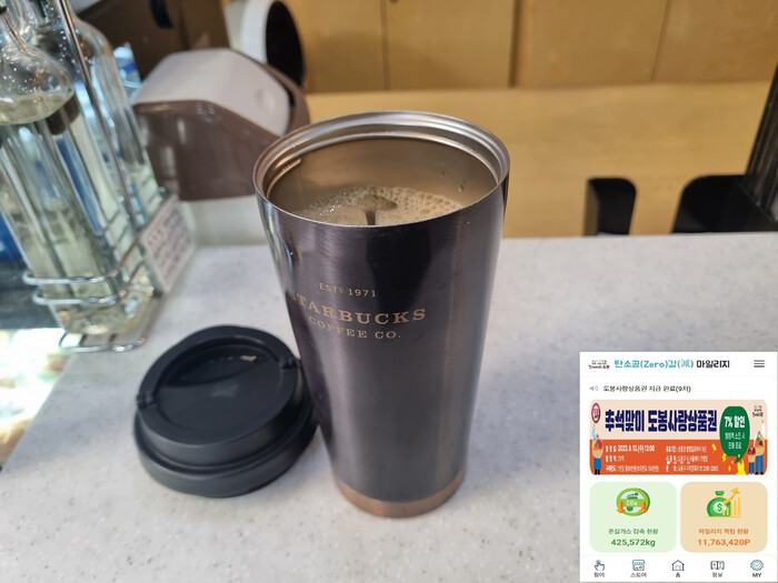 | ▲ 탄소공감마일리지 ‘다회용 컵 이용’ 항목 참여 인증사진. (사진=도봉구청 제공) |