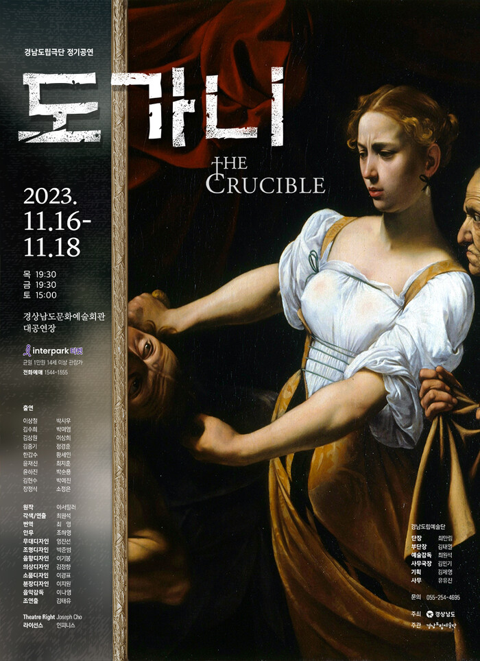 경남도립극단 정기공연 ‘도가니 The Crucible’는 경남문화예술회관 대공연장에서 16일 오후 7시30분, 17일 오후 7시30분, 18일 오후 3시에 공연하며, 예매는 인터파크를 통해 가능하다.