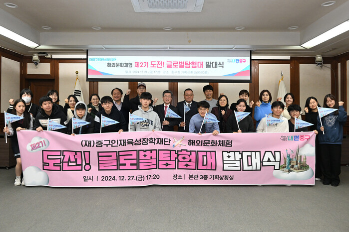 [시민일보 = 여영준 기자] 서울 중구(구청장 김길성) 인재육성장학재단(이사장 박장선, 이하 ‘중구장학재단’)이 지난 27일, 중구청에서 제2기 ‘도전! 글로벌 탐험대’(이하 탐험대) 발대식을 개최했다.