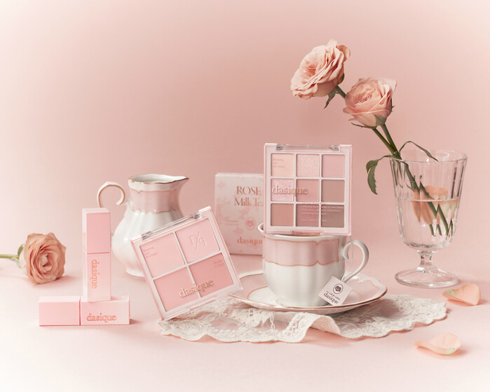 신제품 ‘로즈 밀크티 컬렉션’은 부드러운 밀크티에 여린 장미 꽃잎을 우려낸 듯 은은한 로즈 핑크빛 컬러로 9구 섀도우 팔레트 1종과 블렌딩 무드 치크 1종, 쥬시 듀이 틴트 2종의 신규 컬러를 추가로 선보인다.