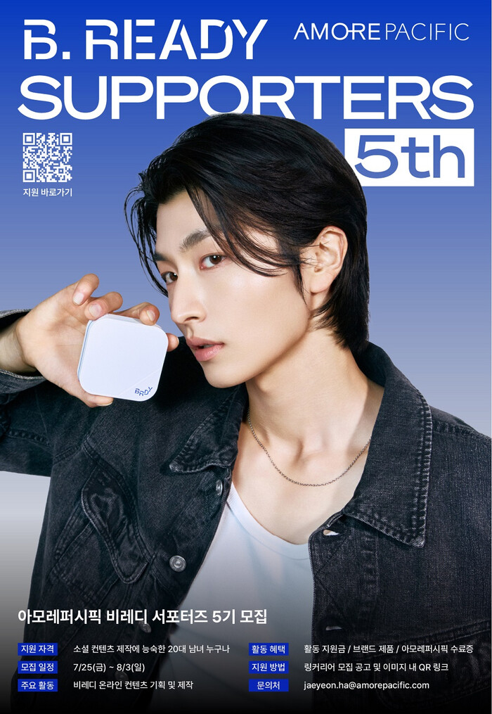 [시민일보 = 문민호 기자] 아모레퍼시픽의 남성 토탈 스타일링 브랜드 비레디(B.READY)가 서포터즈 5기를 모집한다. 7월 25일부터 8월 3일까지 공식 인스타그램 및 링커리어를 통해 지원 신청을 받는다.