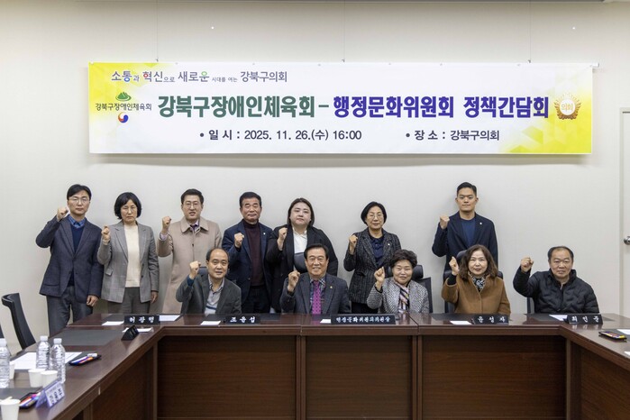 이번 간담회에는 곽인혜 위원장을 비롯해 윤성자 부위원장, 조윤섭·최인준·허광행 의원 등 행정문화위원회 위원이 참석했으며, 강북구장애인체육회 관계자와 구청 생활체육과 관계자도 함께 자리해 장애인 체육정책 현황과 추진 과제에 대해 논의했다.