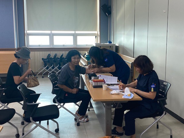 경기 아산시가 5일 농업기술센터에서 여성농업인 60여명을 대상으로 농작업 질환 예방 및 건강복지 증진을 위한 특수건강검진을 시행했다. 사진은 이날 여성농업인 이동형 특수건강검진이 진행되고 있는 모습. (사진=아산시청 제공)