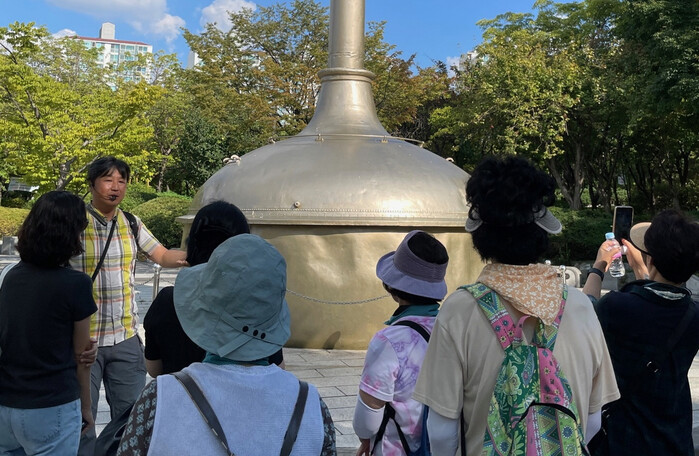 | ▲ 영등포 도심 문화여행 코스 중 영등포공원의 담금솥을 감상하고 있는 주민들 모습. (사진=영등포구청 제공) |