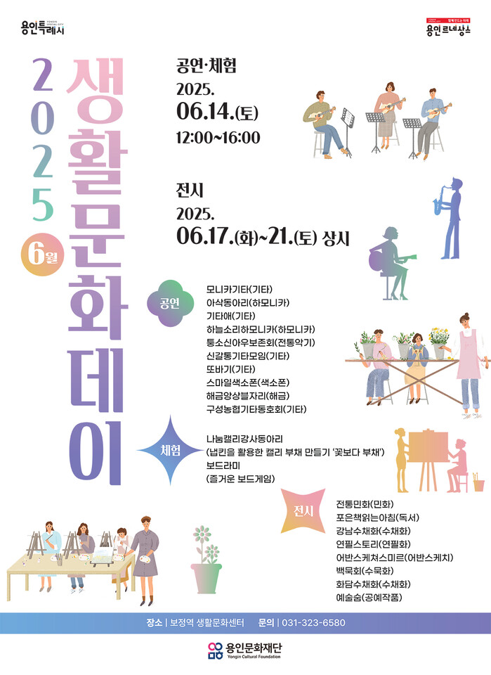 [용인=오왕석 기자] 용인문화재단(이사장 이상일)은 오는 6월 14일(토), 보정역 생활문화센터에서 6월 ‘생활문화데이’를 개최한다고 밝혔다.
