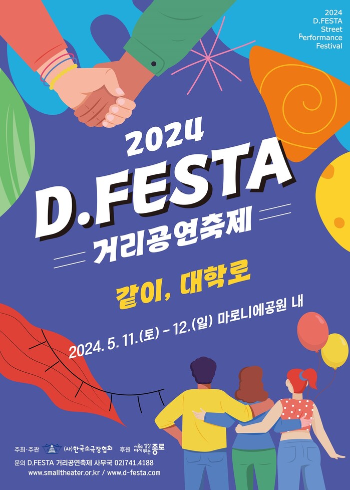 [시민일보 = 이대우 기자] 서울 종로구(구청장 정문헌)가 오는 11~12일 양일간 대학로 마로니에공원 일대에서 ‘2024 D.FESTA 거리공연축제’를 개최한다.