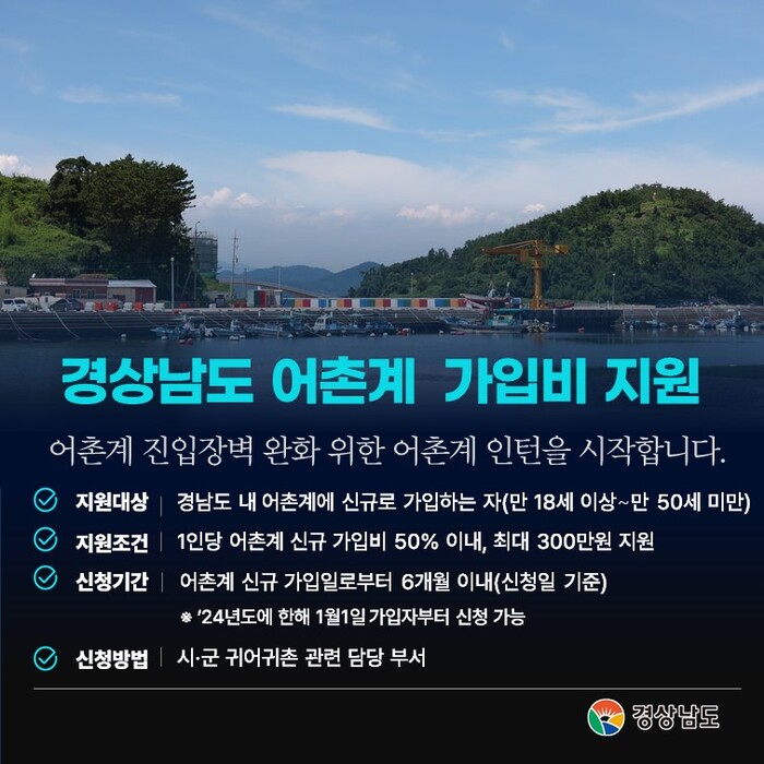 이에 도는 50세 미만 청년의 어촌계 가입비 절반을 지원해 어촌에 안정적으로 정착할 수 있도록 도울 계획이다.