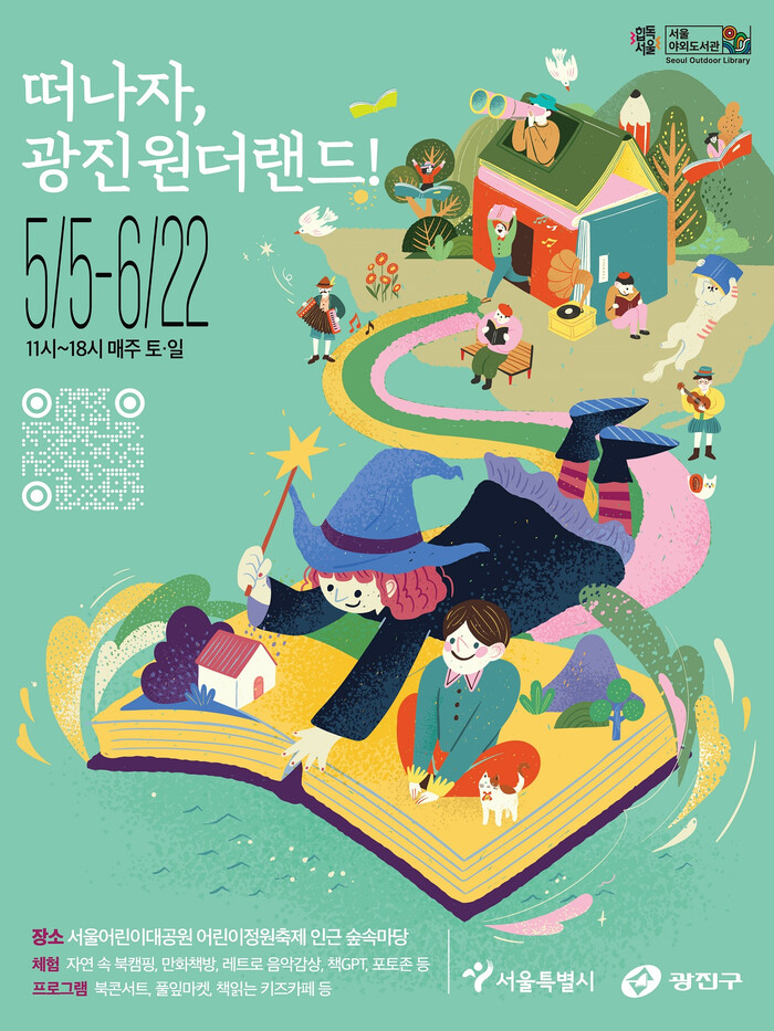 ‘광진 원더랜드’는 서울어린이정원페스티벌과 연계하여 5월 5일, 6일 양일간 특별운영한다. 이후 5월 10일부터 6월 22일까지 매주 토, 일요일에 진행되며 우천 시에는 운영하지 않는다. 자세한 사항은 공식 인스타그램(gwangjinoutdoorlibrary)에서 확인할 수 있다.