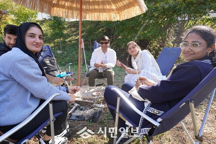 | ▲ 추억의 구이터 체험을 하고 있는 외국인 관광객들 / 해남군 제공 |