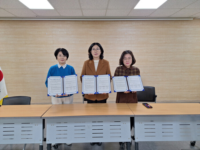 충남 예산군이 최근 농업기술센터 소장실에서 국공립대방엘리움어린이집, 국공립이지더원2차어린이집과 지역농산물 소비 확대를 위한 공공급식 업무협약을 체결했다. 사진은 협약식에서 관계자들이 기념 촬영을 하는 모습. (사진=예산군청 제공)