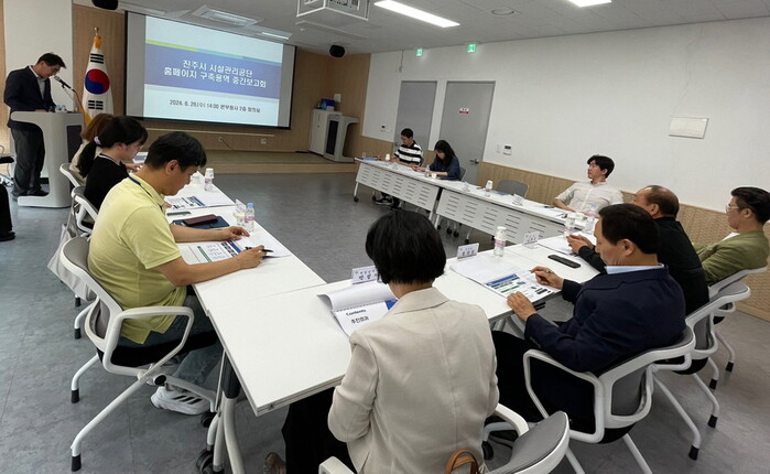 진주시 시설관리공단(이사장 정상섭)은 26일 공단 본부청사 2층 회의실에서 ‘시설관리공단 대표 홈페이지 구축 용역 중간보고회’를 개최했다.