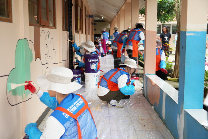 | ▲ 인도네시아 현지 초등학교 벽화 봉사 활동하고 있는 모습. (사진=KT&G복지재단 제공) |