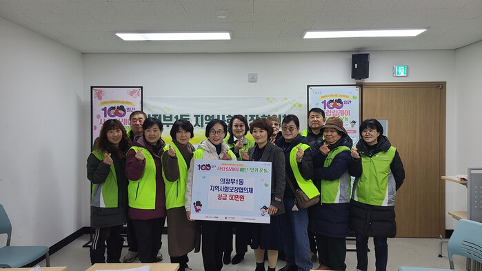 경기 의정부시 의정부1동 주민센터가 최근 의정부1동 지역사회보장협의체로부터 성금 50만원을 기부 받았다. 사진은 기부금 전달 후 관계자들이 기념 촬영을 하는 모습. (사진=의정부시청 제공)
