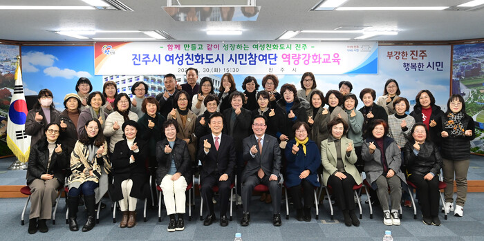 진주시는 30일 시청 문화강좌실에서 여성친화도시 시민참여단(단장 김병윤) 50명을 대상으로 ‘여성친화도시 시민참여단 역량강화 교육’을 실시했다.