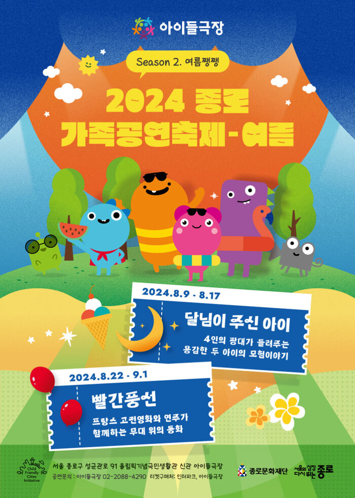 [시민일보 = 이대우 기자] 서울 종로구(구청장 정문헌)가 여름방학을 맞아 어린이와 온 가족이 함께 즐길 수 있는 ‘2024 종로 가족공연축제-여름’을 9일부터 개최한다.