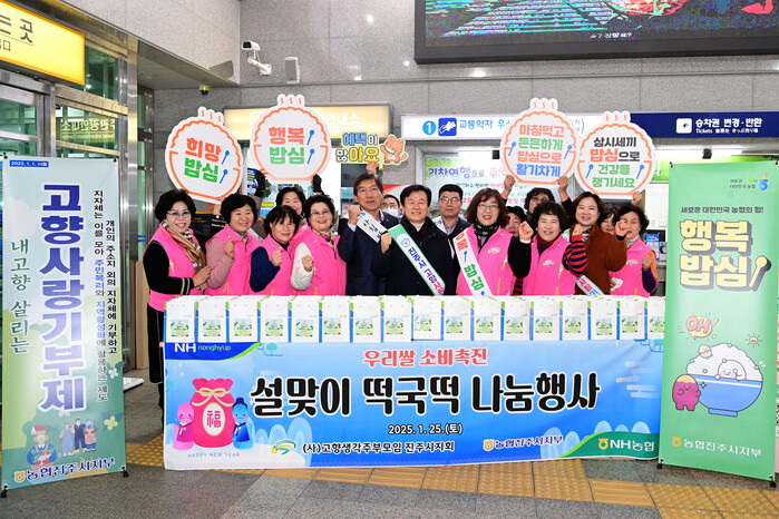 이날 진주역에서는 ‘진주쌀 소비촉진 및 고향사랑기부제 장려 캠페인’이 함께 진행돼, 귀성객들을 대상으로 진주쌀로 만든 떡국떡 나눔과 고향사랑기부제 홍보 행사가 펼쳐졌다.