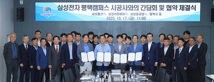 이날 간담회에는 삼성전자 평택캠퍼스 주요 시공사와 하도급사 관계자, 대한건설협회 평택시지회 등 지역건설단체 대표, 평택도시공사·평택상공회의소 등 주요 기관 관계자들이 참석했다.