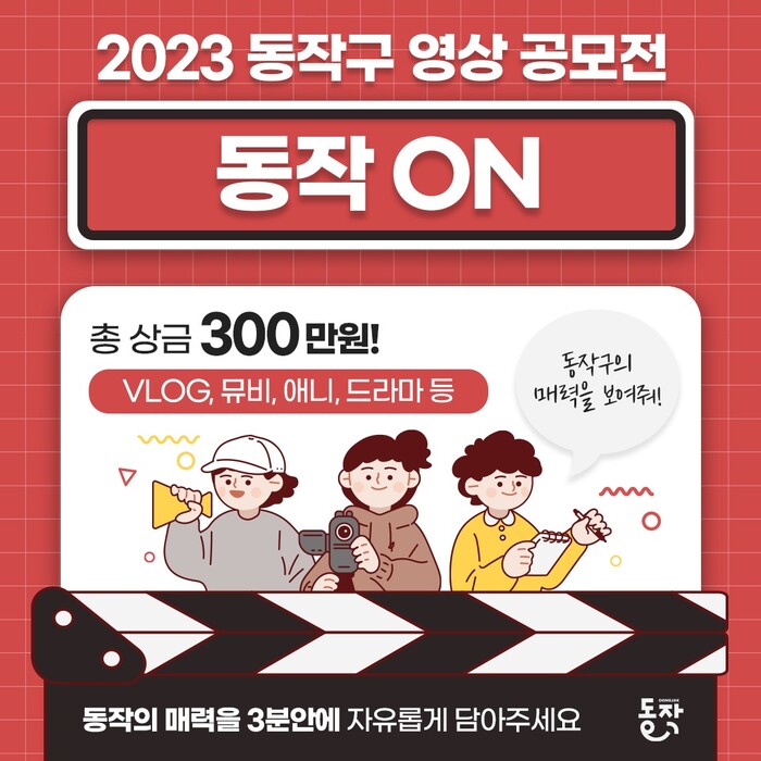 [시민일보 = 여영준 기자] 서울 동작구(구청장 박일하)가 다양한 구 정책과 명소 등을 소개하는 ‘2023 동작구 영상 공모전’을 개최한다고 22일 밝혔다.