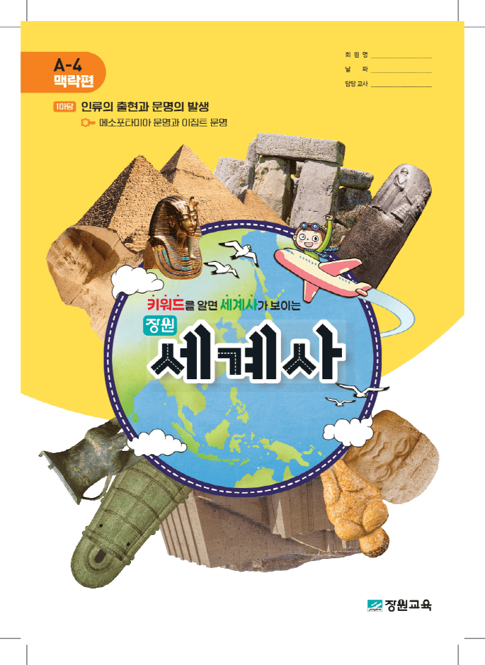 ‘장원세계사’는 세계사 전문 학습지로서 암기 중심의 세계사 수업을 지양하고, 재미있는 학습만화와 사고력 문제로 학습자의 적극적인 참여를 유도한다, 개념 학습과 180개 용어, 45개 주제 학습의 반복으로 세계사의 체계를 잡아주며, 세계 여러 지역의 역사를 폭넓게 서술하여 세계 시민의 자세를 길러준다. 또한 1일 1주제, 1일 1용어 학습을 도입하여 학습자의 학습 부담감을 덜어준다.