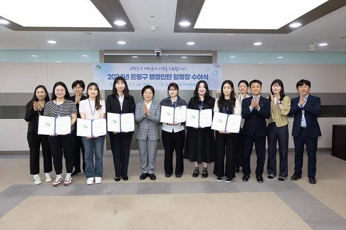 [시민일보 = 이대우 기자] 서울 은평구(구청장 김미경)가 공직에 관심 있는 지역내 청년 6명을 행정인턴으로 채용하고, 최근 임명장 수여식을 개최했다고 밝혔다.