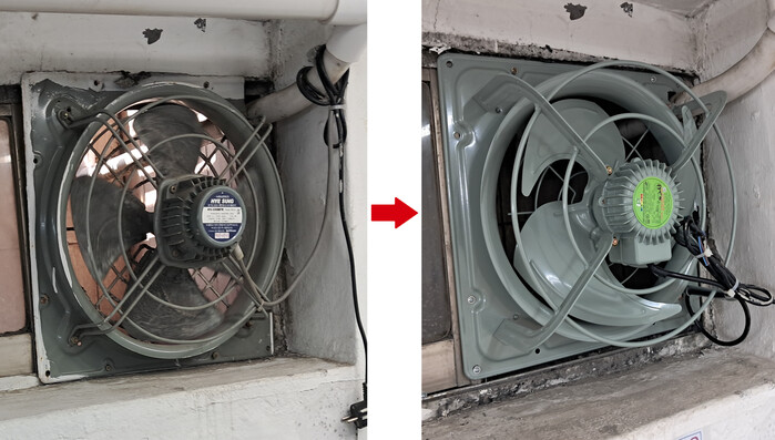 | ▲ 의류 제조업체 창호 환풍기 교체 전, 후. (사진=동대문구청 제공) |