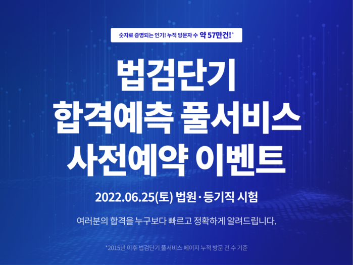 법검단기 합격예측 풀서비스는 홈페이지에 로그인 후 무료로 예약할 수 있으며, 이벤트에 대한 자세한 사항은 홈페이지에서 확인할 수 있다.