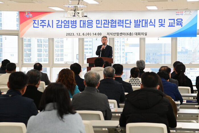 진주시는 6일 지식산업센터 대회의실에서 ‘진주시 감염병 대응 민관협력단 발대식 및 교육’을 진행했다.